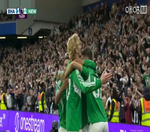 半场结束,布莱顿暂时主场1-0领先纽卡。