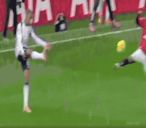 顶住了热刺的狂轰滥炸,第69分钟,阿玛德·迪亚洛送出精准长传,B费的停球世界级,但帕利尼亚迅速赶到,B费仓促出脚,放了高射炮。