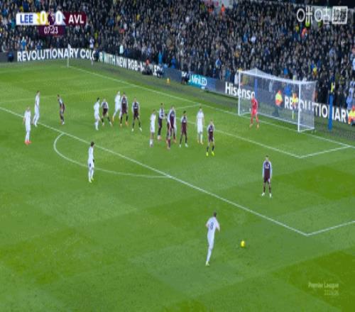 第75分钟,摩根-罗杰斯任意球直接破门完成双响,维拉2-1利兹联