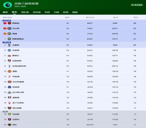 15场比赛13胜2平,阿森纳领跑英超积分榜