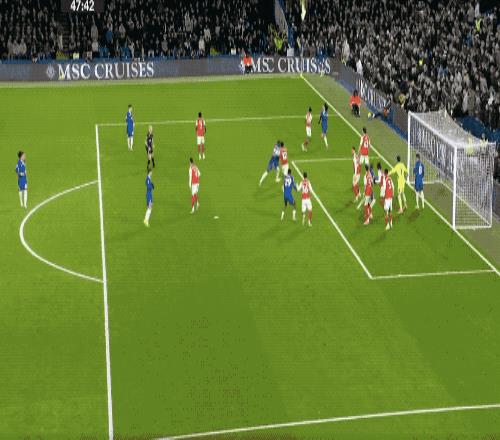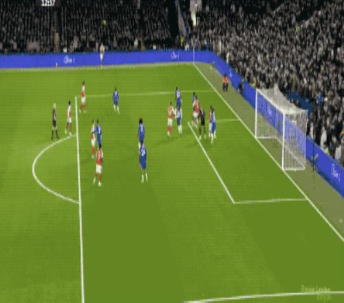 第12分钟,赖斯的界外球被解围,埃泽送出妙传,萨卡准备打穿桑切斯的小门,被蓝军门将识破。