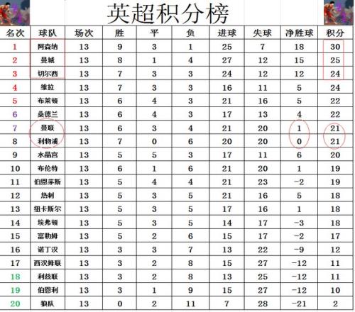 积分榜方面,阿森纳不能击败切尔西,这样的话他们本轮相当于是被曼城追回了2分,阿森纳现在多曼城5分继续领跑。切尔西无力赢球,他们就无法超过曼城重回前2,同时还被维拉追上,切尔西净胜球优势排在第3。曼联和利物浦今天都赢了球,两队还是积分一样,利物浦净胜球劣势排在第8,落后第2的曼城4分,要是之后真能保持赢球势头,追回前4,乃至前2都是有机会的。