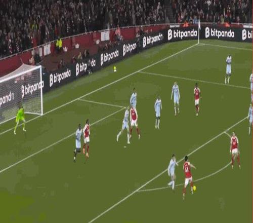 伤停补时阶段,梅里诺送出直塞,萨卡闪开角度左脚射门,凯莱赫虽然扑到皮球但无力阻止皮球飞入球门。阿森纳锁定胜局。