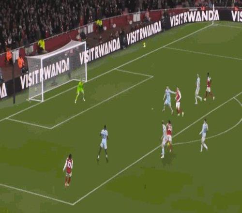 第28分钟,阿森纳前场打出精妙的配合,马丁内利禁区前沿迎球射门高出横梁。