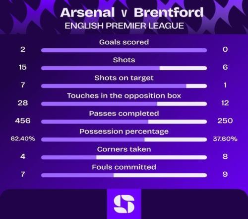 阿森纳2比0布伦特福德