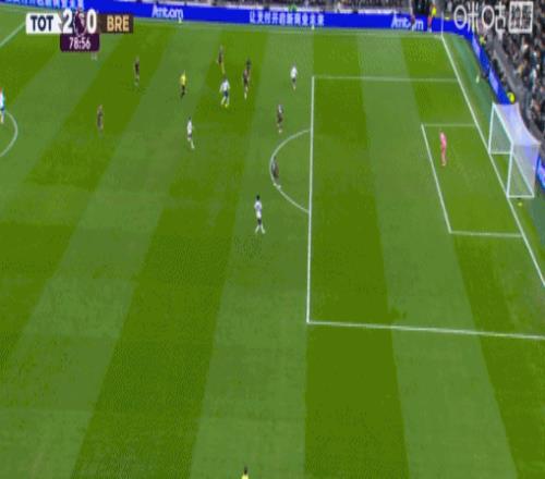 第43分钟,西蒙斯中场抢回球权后一条龙破门斩获热刺生涯首球,热刺2-0