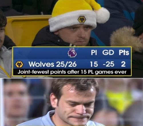 被曼联痛击后,狼队只能无奈接受一个残酷的现状,那就是这支球队已经追平了英超历史上最差开局。至此,狼队本赛季英超前15轮仍未尝一胜,战绩为2平13负,且最近8场联赛均遭遇失利。狼队在英超联赛中遭遇了8连败,更是创下队史顶级联赛最长连败纪录,