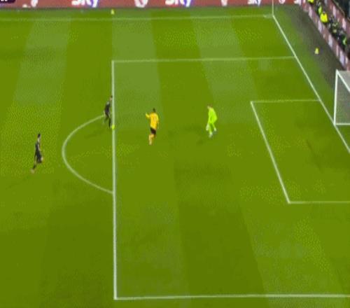 补时阶段,狼队沃尔费助攻贝勒加德将比分扳成1-1平手,双方进入中场休息。