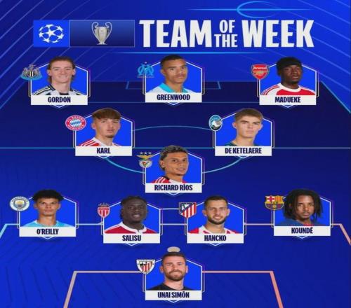 并且马杜埃凯还被评为了本周欧冠最佳球员!