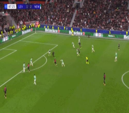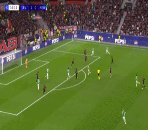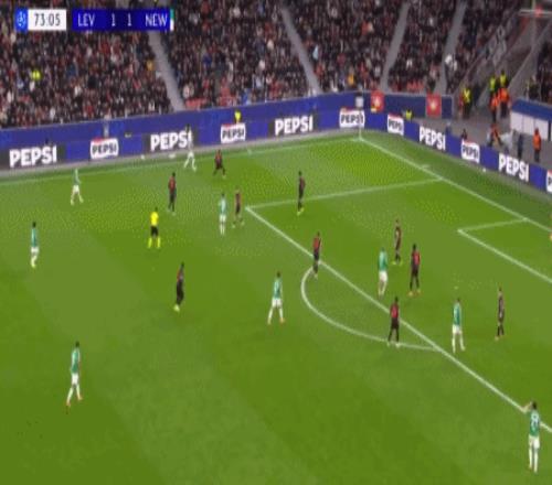 第88分钟,马扎助攻,格里马尔多插射破门扳平比分,勒沃库森2-1纽卡