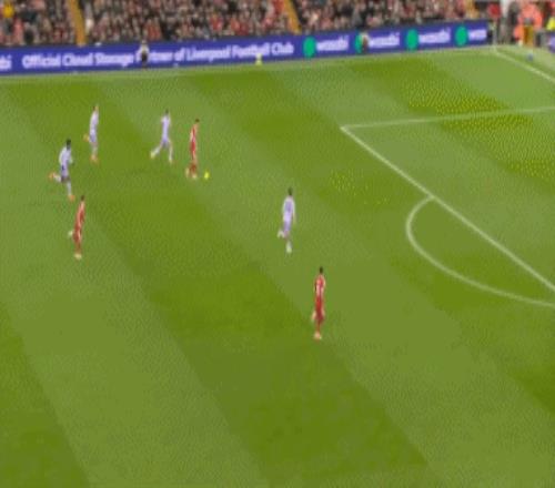 出场之后第一次触球,萨拉赫就险些制造进球。第27分钟,萨拉赫直塞,麦克阿利斯特禁区内回传,门将抢在埃基蒂克前没收皮球。