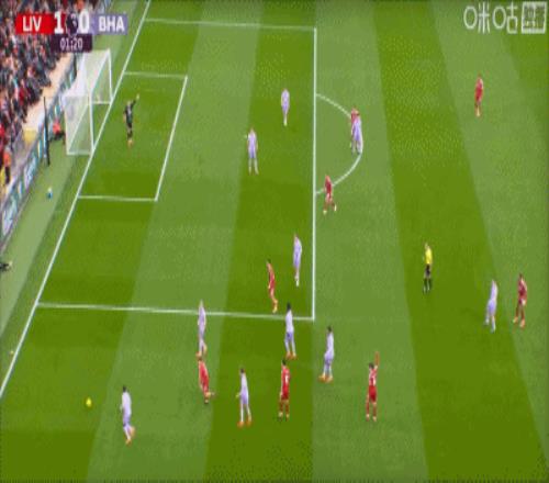 第1分钟,闪电战!埃基蒂克接戈麦斯头球抽射破门,利物浦1-0领先布莱顿!