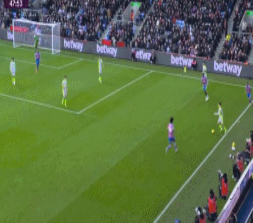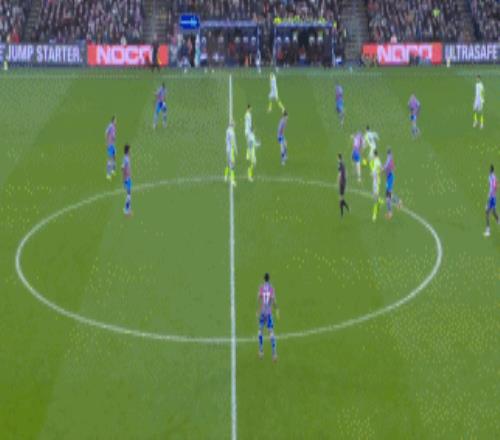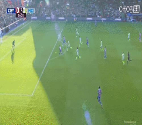 开场17分钟,水晶宫前场中路亚当-沃顿送出精彩传球,皮诺胸部停球后大禁区线上直接一脚劲射,可惜皮球击中横梁,曼城逃过一劫。