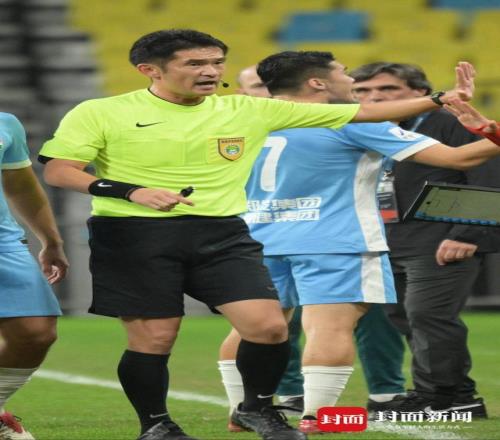 艾堃在比赛中多次争议判罚。陈羽啸 摄