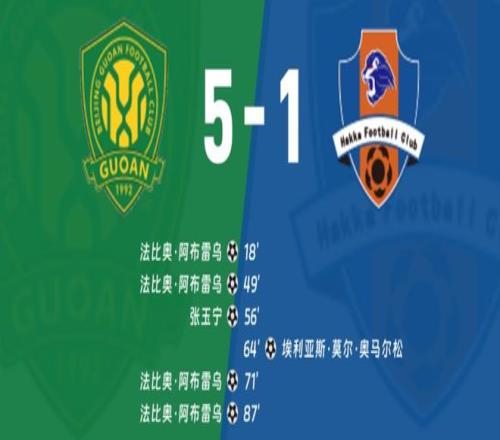 “民声君”无意再度复盘北京国安对阵梅州客家的比赛,上半场,法比奥先后接柏杨和王刚的助攻头槌破门完成“梅开二度”。下半场,张玉宁补射破门,奥马尔松扳回一城;随后法比奥再入两球完成“大四喜”,终获联赛金靴。最终,主场5:1送梅州降级。