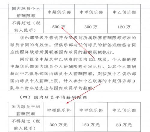 2,中足联规定:中超球员中,国内球员的年薪上限是500万人民币,国内球员平均限额为300万人民币!而外援最高的上限是300万欧元年薪。(均为税前)——这样的做法,可以避免过度的,非理性的投入,反倒导致中国足球俱乐部之间的“不良内卷”,这样的设置,对于各家俱乐部和球员都是有好处的。