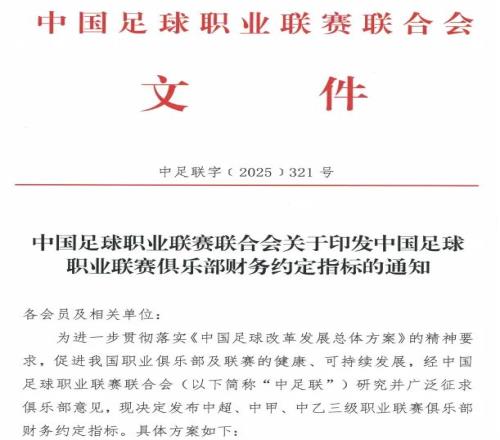 日前,中足联在官网发布《中国足球职业联赛俱乐部财务约定指标》,明确规定了俱乐部总支出限额、一线队球员薪资、俱乐部奖金限额等财务指标,并出台了对应的处罚措施。明眼人都看得出,其所针对的,就是“金元足球”盛行时的种种怪象,给俱乐部减负,维持联赛的健康发展。