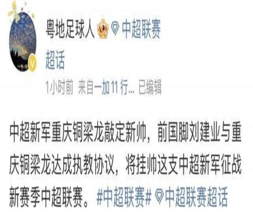 据博主《粤地足球人》透露,上个赛季执教中甲球队定南赣联的主教练刘建业,将会成为重庆铜梁龙的新一任主帅。刘建业上个赛季带队拿到了中甲第6的成绩,综合球队的身价、人员配置来看,这个排名超出了预期,并且有主客场战平辽宁铁人,主场3-1战胜重庆铜梁龙这样的代表作。战术务实,比较符合中超保级队的需求,但执教经验略显不足,情怀上也没法和张外龙来比。
