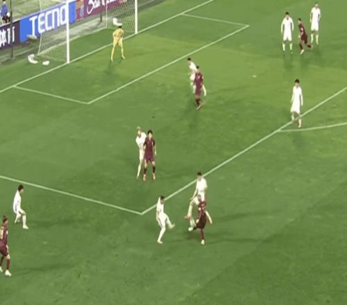 比赛进入伤停补时阶段,费利佩禁区外背身拿球,顶着多人的防守,快速转身轰出一脚漂亮的世界波,1:1!半场比赛结束,双方暂时战成平局。