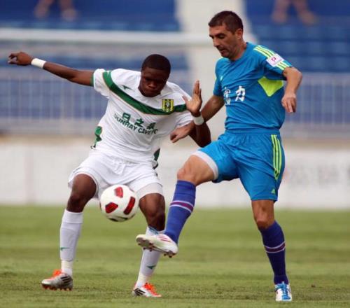 2011年,日夫科维奇(右)随广州富力队冲上中超后便就此退役(东方IC)